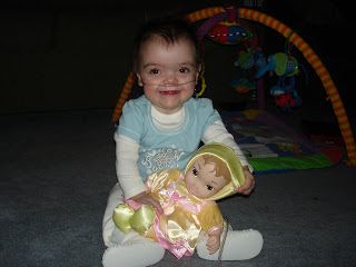 The above picture is of Maryam playing with her first dolly. Thanks Aidan! She LOVES it!